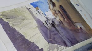 La temporada empieza con un tema capital en el estudio de la acuarela, de la pintura.. La obra ha de estar lo suficientemente estructurada en la mente el artista cuando acomete/trabaja esta técnica. No siendo una ciencia, es imposible detenerse a decidir dónde y cómo porque el medio (la humedad, la viscosidad, la temperatura) siguen actuando y no nos darán tregua.